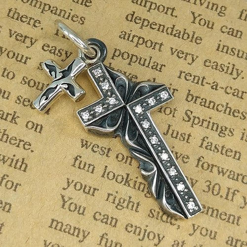 イブシが入った変形シルバークロスに小さ目のクロスがセットされたシックでハードに決まるペンダントトップです!