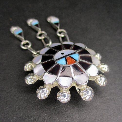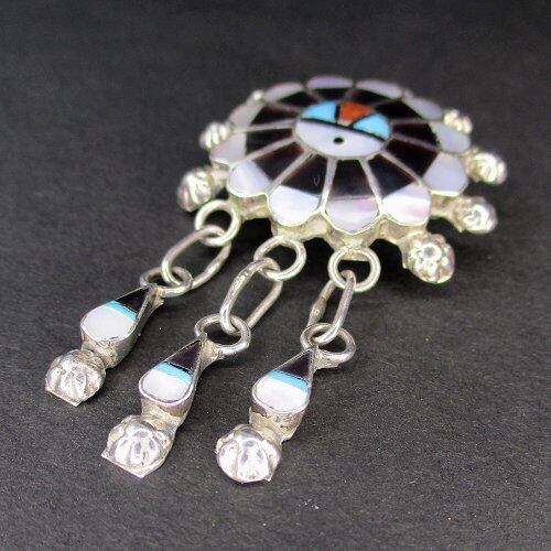 このペンダントに使用されているサンフェイスデザインは、ズニ族の伝統的なモチーフを反映したアート作品です!