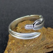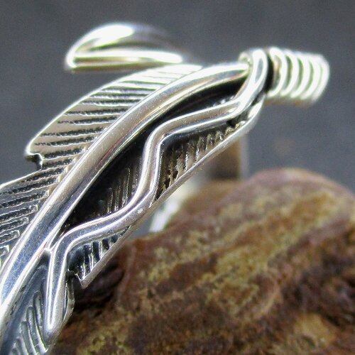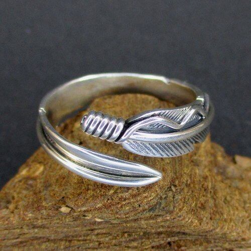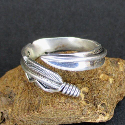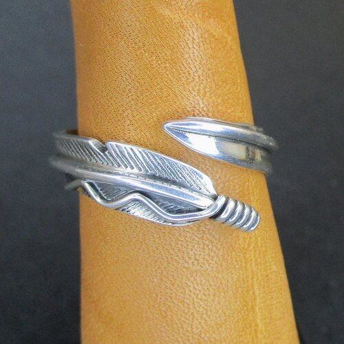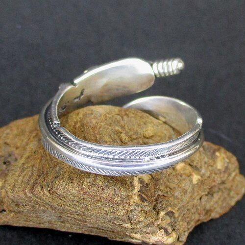 ナバホ(Navajo)族のジュエリーアーティスト『Joe Mace』氏が製作したフェザーモチーフのフリーサイズのリングです。