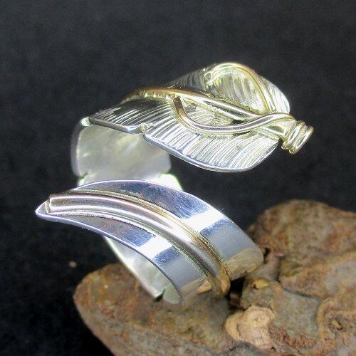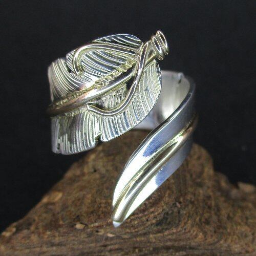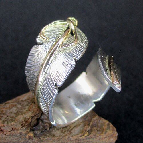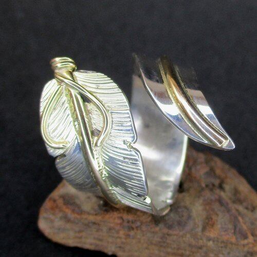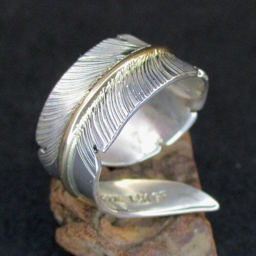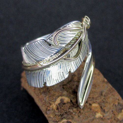 Navajo リング John Nelson イーグルフェザー12KGF フリーサイズリング [#Ring-N-89]
