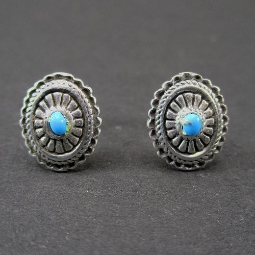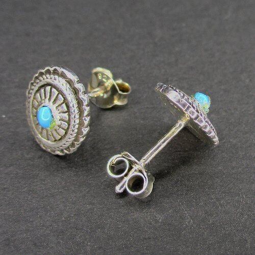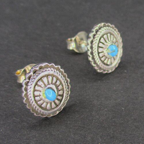 コンチョをモチーフにセンター部分にターコイズを組み合わせたピアスです。