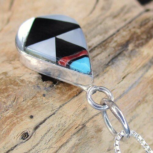 このZuni マルチインレイ ティアドロップ ペンダントは、厳選された高品質な素材を使い、熟練の職人によって丁寧に制作されています!