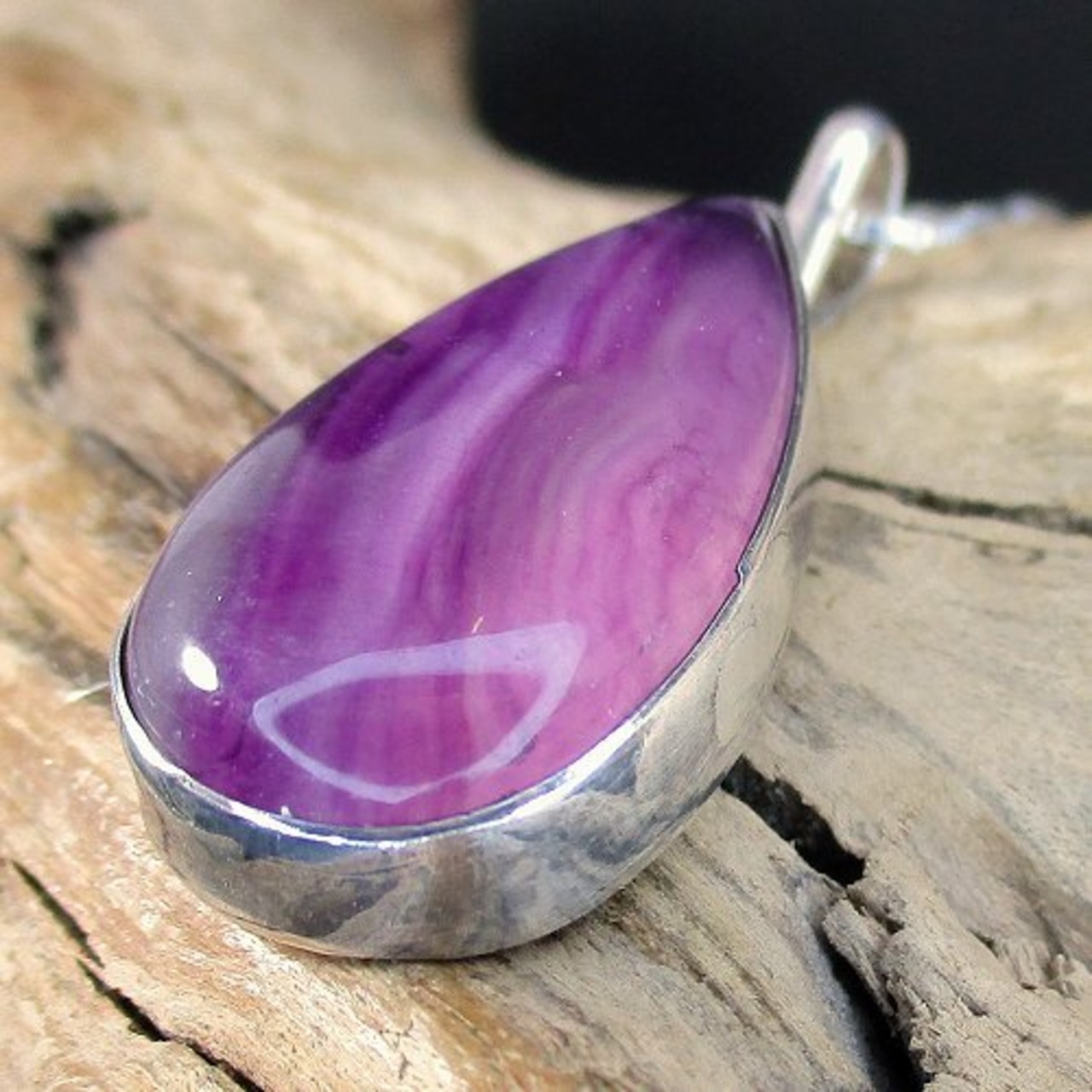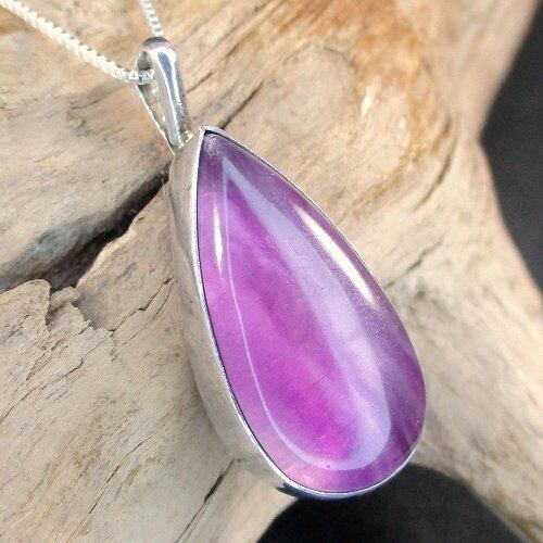 神秘的なパープルフローライトを使用したエレガントなデザインのペンダントです!