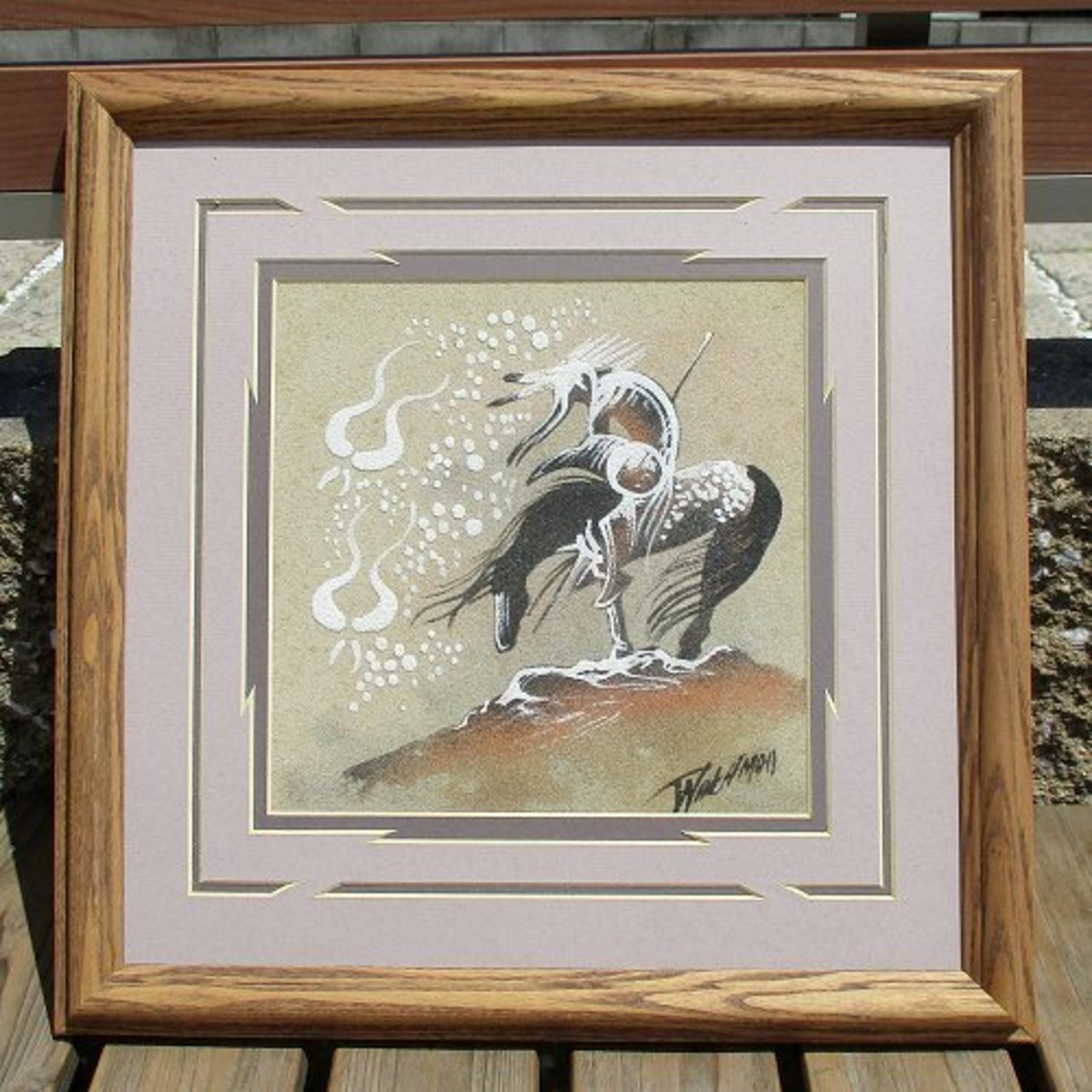 現在では地面に描かれる物から盤面に描かれるスタイルに変わりはしましたがナバホ(Navajo)族特有の作品としても人気が高い。
