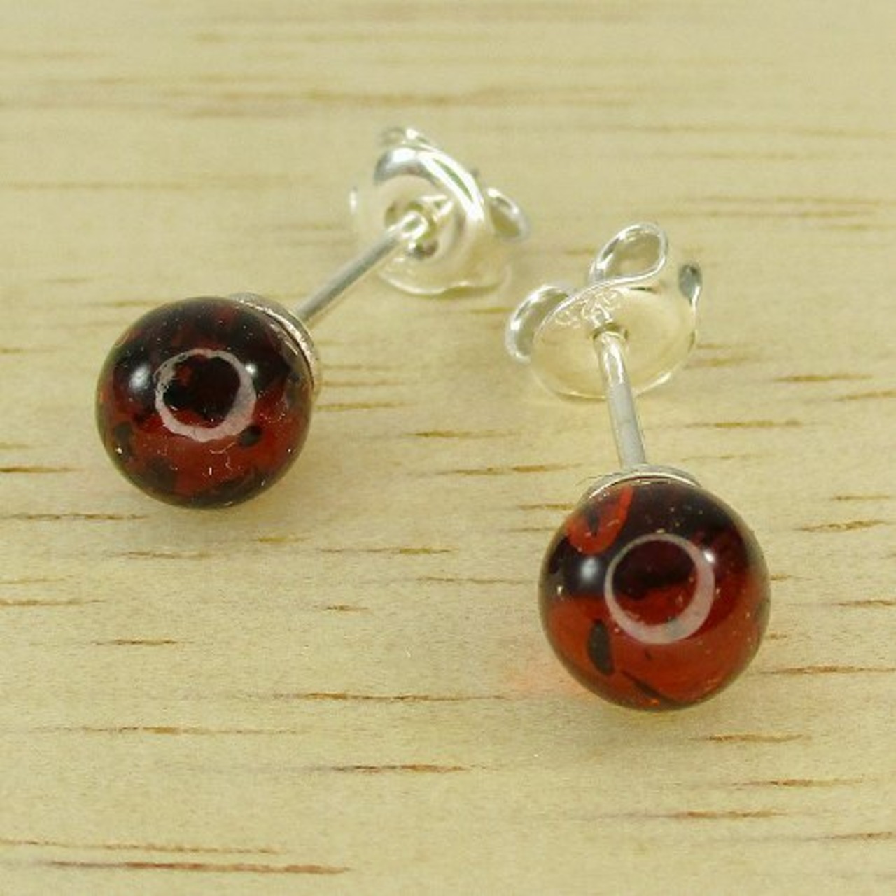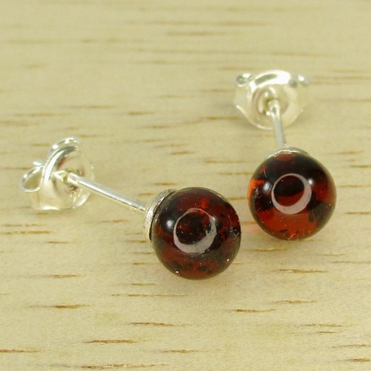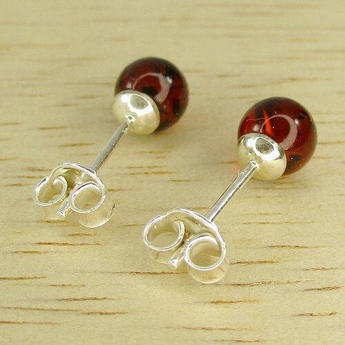 シルバーベースにラウンド型のリトアニア産のバルトアンバー(琥珀)をセットしたたシンプルなピアスです。